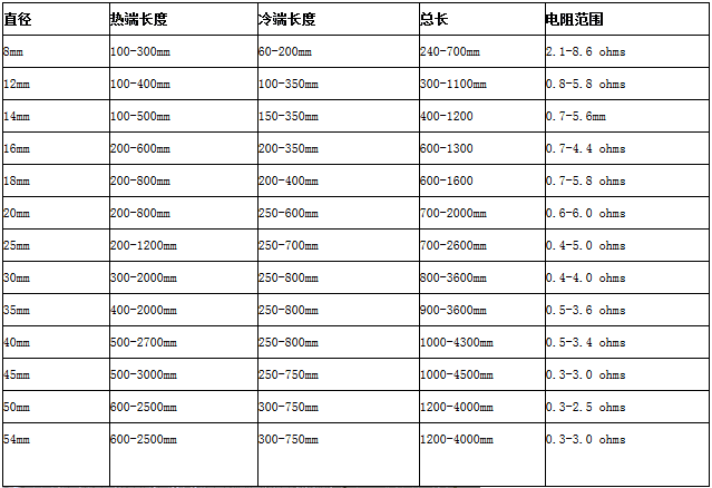 (5) 硅碳棒的溫度分布特性,新出貨時的檢查規(guī)格為在有效發(fā)熱長度內(nèi)為Δ60℃以內(nèi)才算合格,當(dāng)然溫度分布會隨著其老化而變大的,最終可能達(dá)到200℃。具體溫度分布變化也因爐內(nèi)氣氛、使用條件的不同而不同。。具體溫度分布變化也因爐內(nèi)氣氛、使用條件的不同而不同。